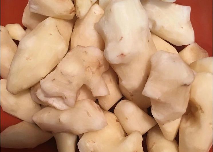 Sunchokes can be prepared and eaten in a number of different ways. They can be eaten raw, pickled, roasted, or stewed. These are peeled sunchokes.